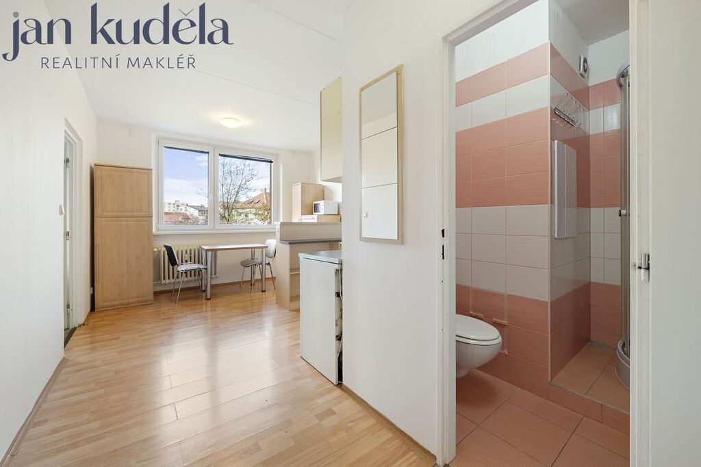 Po vstupu se nacházíte v chodbě, která plynule navazuje na kuchyňský prostor. Z chodby je samostatný vstup do šatny, koupelny s toaletou a do ložnice. Dispozice je praktická a nabízí dostatek úložných možností.