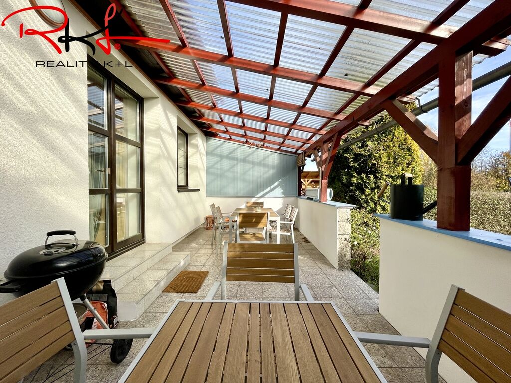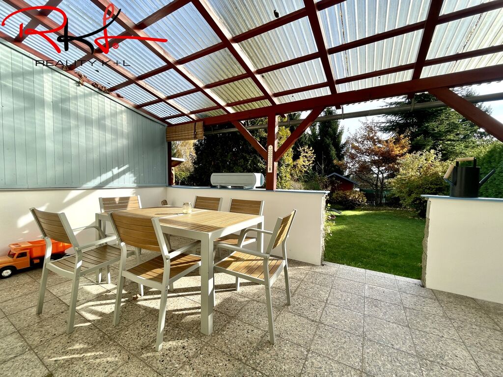 Obytná plocha domu činí zhruba 125 m2, zahrada o velikosti 224 m2 + zastřešená terasa.