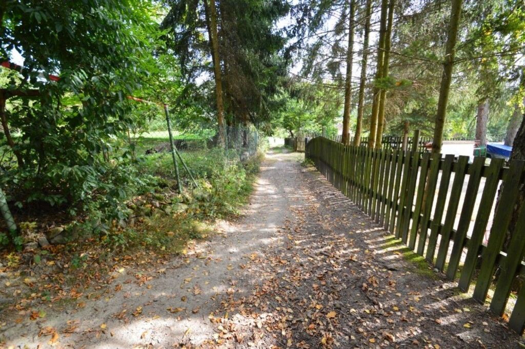 Na pozemku stojí kůlna dřevo, vedle ní je branka do lesa a několik ovocných stromů. Po vnějším obvodu je nové oplocení. Pozemek je převážně v rovinatý.