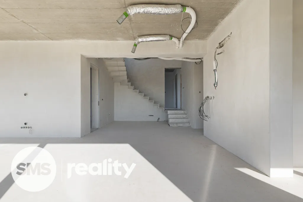 Nemovitost se prodává ve stavu Shell and Core. Již jsou dokončeny rozvody klimatizace, tepelné čerpadlo voda–vzduch včetně napojení, rozvody rekuperace (bez jednotky) a kompletní teplovodní podlahové vytápění v celém domě. Všechny technologie byly navrženy tak, aby zajistily energeticky úsporný provoz a vysoký uživatelský komfort.