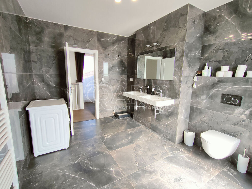 Dominantou přízemí je velký obývací pokoj s krbem a velkými okny, který je vkusně rozdělen na obývací, kuchyňskou a jídelní část. Krb dodává prostoru velmi útulný nádech. Pět neprůchozích pokojů zaručují dostatek soukromí pro početnou rodinu. V přízemí se také nachází spíž, hlavní ložnice, samostatné WC, zádveří s přímým vstupem do garáže a technické místností. Za zmínku stojí hlavní ložnice s vlastní koupelnou a šatnou, se výstupem na zastřešenou terasu orientovanou na západ. Druha terasa se nachází v prvním patře hned nad hlavní ložnici a je přístupná ze společné chodby. První patro tvoří 3 ložnice, velká koupelna a prostorná komora.