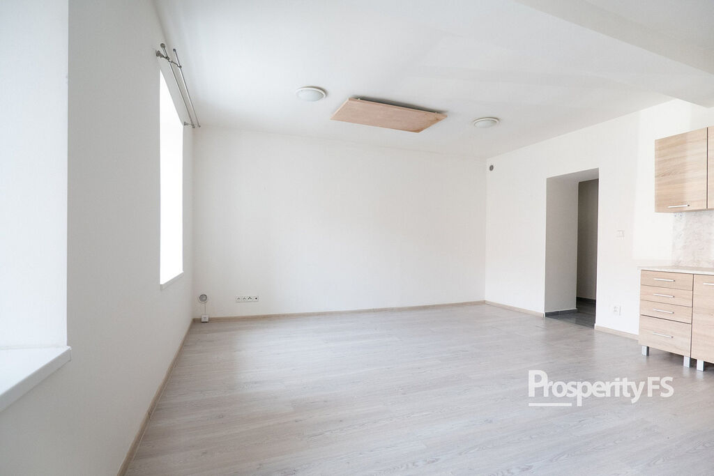 V přízemí zrekonstruovaného domu nabízíme ateliér o dispozici 1+kk a výměře 33m². V domě se nachází celkem 4 bytové jednotky a 2 ateliéry. Ve zvýšeném přízemí zatepleného domu naleznete útulný ateliér připravený k nastěhování či pronájem.