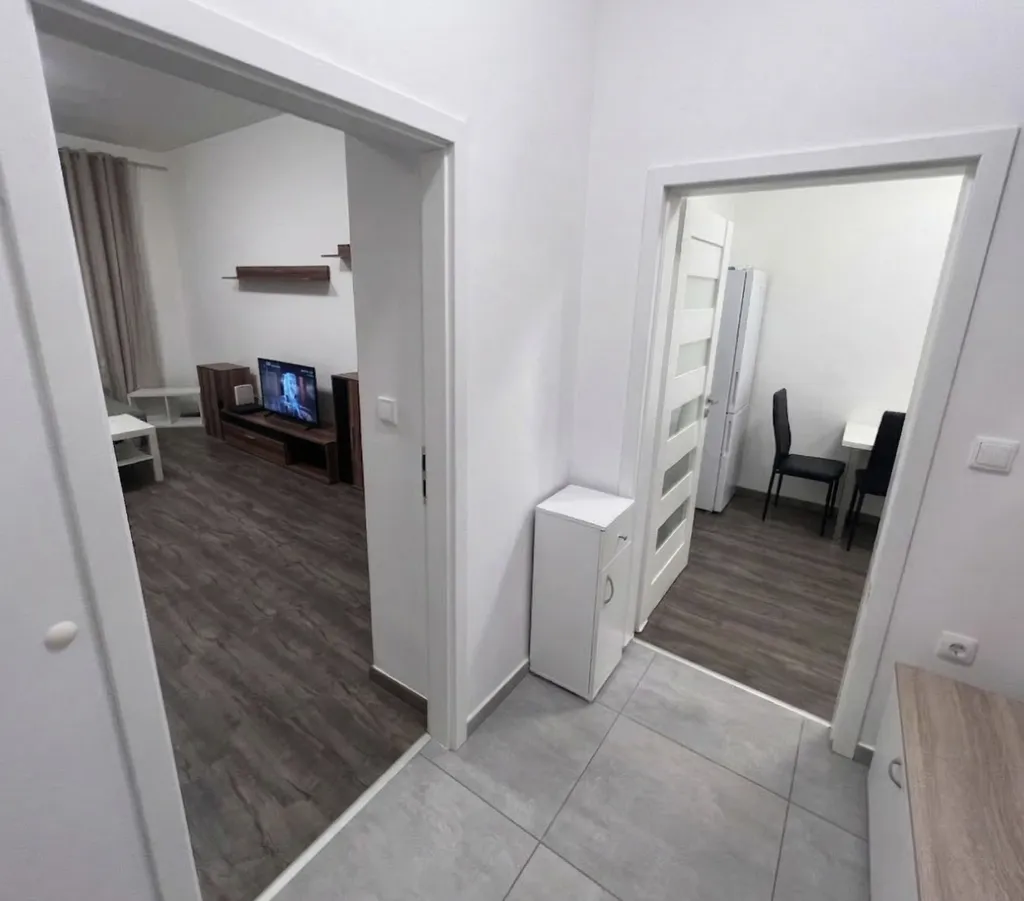 Byt má praktické uspořádání – prostorný obývací pokoj, samostatnou ložnici a kuchyň s kompletně vybavenou linkou (varná deska, trouba, myčka, lednice). Koupelna je vybavena vanou, umyvadlem a toaletou, což ocení zejména rodiny s dětmi či ti, kteří si rádi dopřejí pohodlnou koupel. Díky umístění v přízemí je byt navíc ideální pro ty, kteří preferují snadnou dostupnost bez schodů.