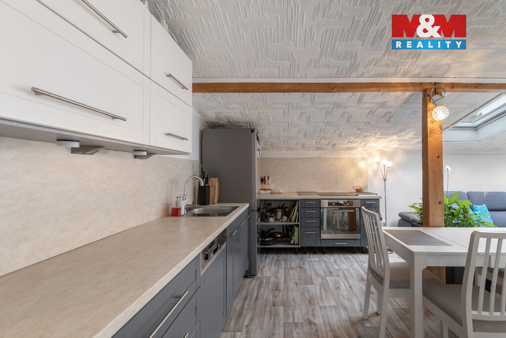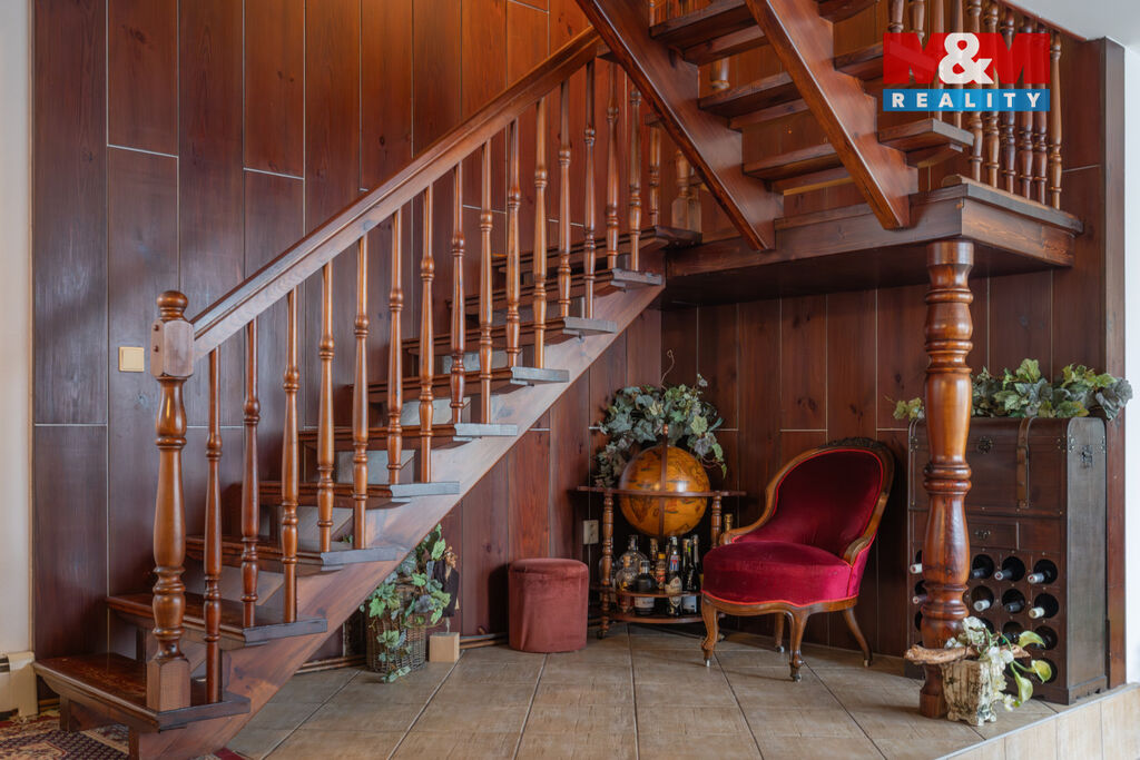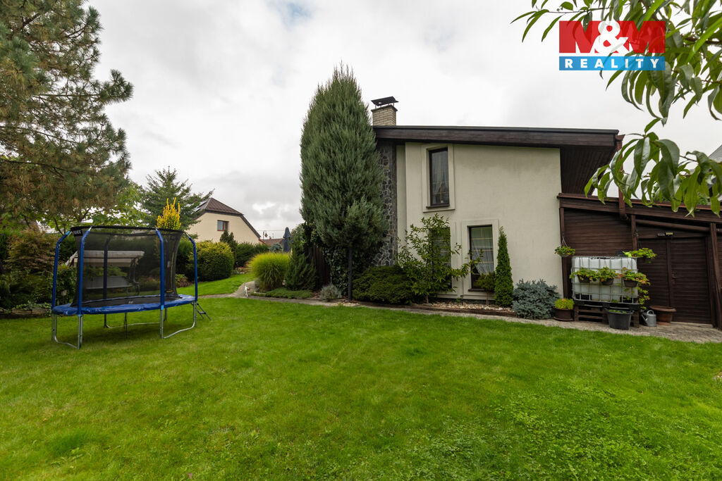 Nabízíme k prodeji luxusní rodinný dům v klidné části Třebovic na ul. Krameriova. Tento dům o celkové užitné ploše 298 m² zahrnuje dvě samostatné bytové jednotky a je ideální pro rodinné bydlení nebo investici. První jednotka v podkroví nabízí dispozici 3+KK s koupelnou, WC, šatnou a balkonem. Druhá jednotka, umístěná od mezipatra, zahrnuje tři pokoje, koupelnu, WC, velkou šatnu a balkon. Přízemí dominuje prostorný obývací pokoj s kuchyní a jídelnou, který je propojen s terasou a venkovním bazénem. Suterén obsahuje garáž a technickou místnost. Zahrada o ploše 884 m² nabízí přístřešek pro auta, okrasnou část a zahradní domek. Dům je vytápěn plynovým topením s radiátory KPT-D Hydronic.
