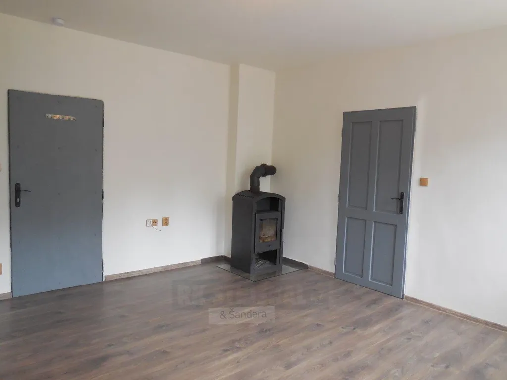 Dispozice: hlavní obytná místnost se zádveřím s prostorem pro pračku, s kuchyňskou linkou a krbovými kamny, menší samostatná ložnice průchozí do koupelny se sprchovým koutem, umyvadlem a WC, z obou pokojů okna do ulice s výhledem na řeku.