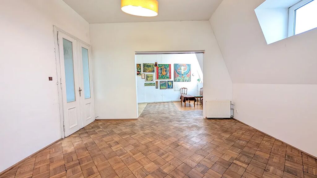 Byt byl v minulosti využíván jako ateliér, díky čemuž působí vzdušně, originálně a má svůj nenahraditelný charakter.