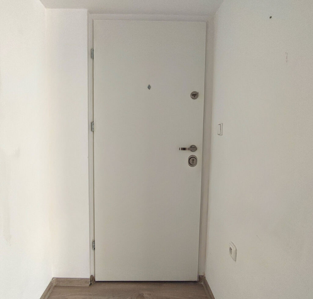 V bytě se nachází zádveří, 3 samostatné pokoje (18 m², 10 m², 15 m²), obývací pokoj (32m²) propojený s kuchyňským koutem, komora na potraviny (2m²), koupelna s vanou a sprchovým koutem (5 m²), prostorné WC s bidetem. Technická mistnost (2 m²) na umístění pračky + sušučky.