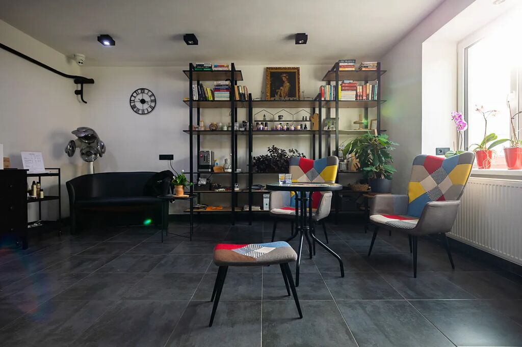 Suterén: dvě provozovny – kadeřnictví a vinárna