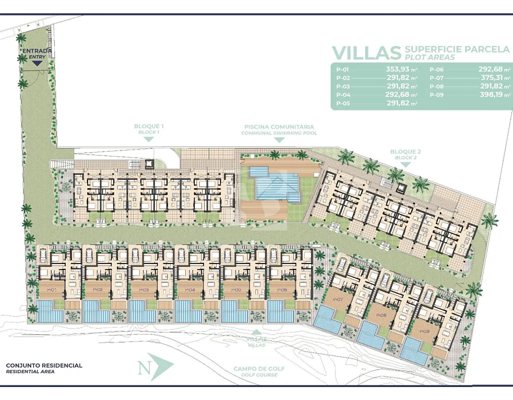 Nový rezidenční komplex se skládá ze 32 apartmánů a penthousů se 2 a 3 ložnicemi a 9 exkluzivních vil, které spojují moderní design, kvalitu a funkčnost. Jeho nepřekonatelná poloha nabízí úchvatný výhled na golfové hřiště a Mar Menor.