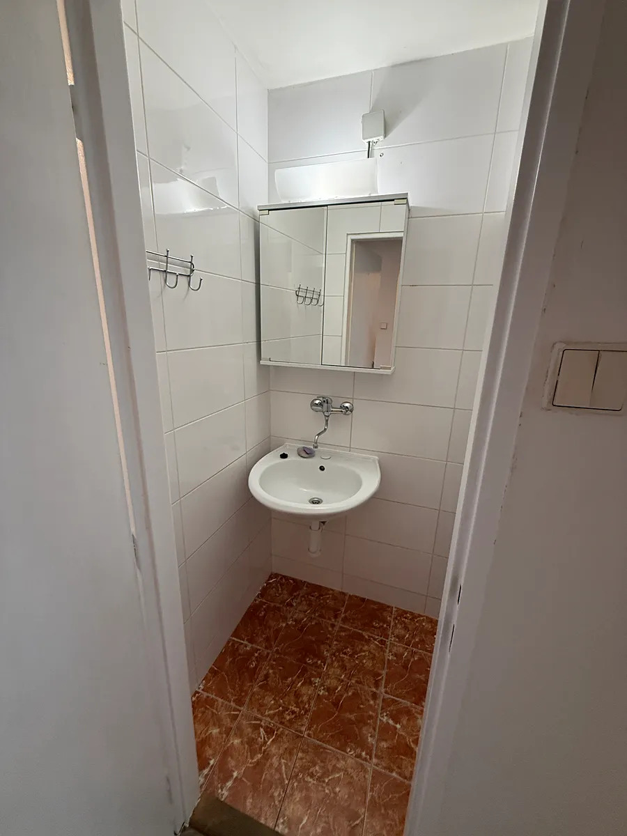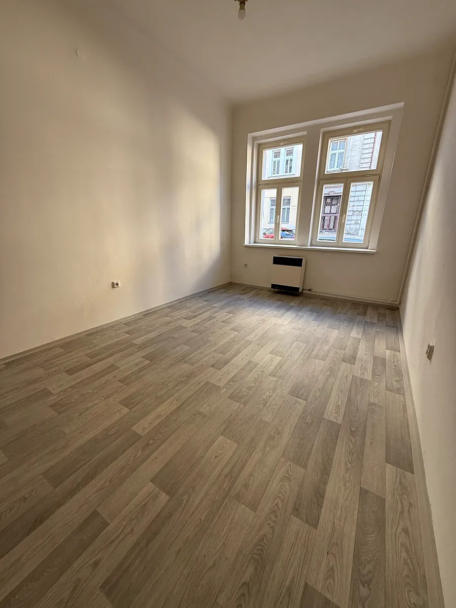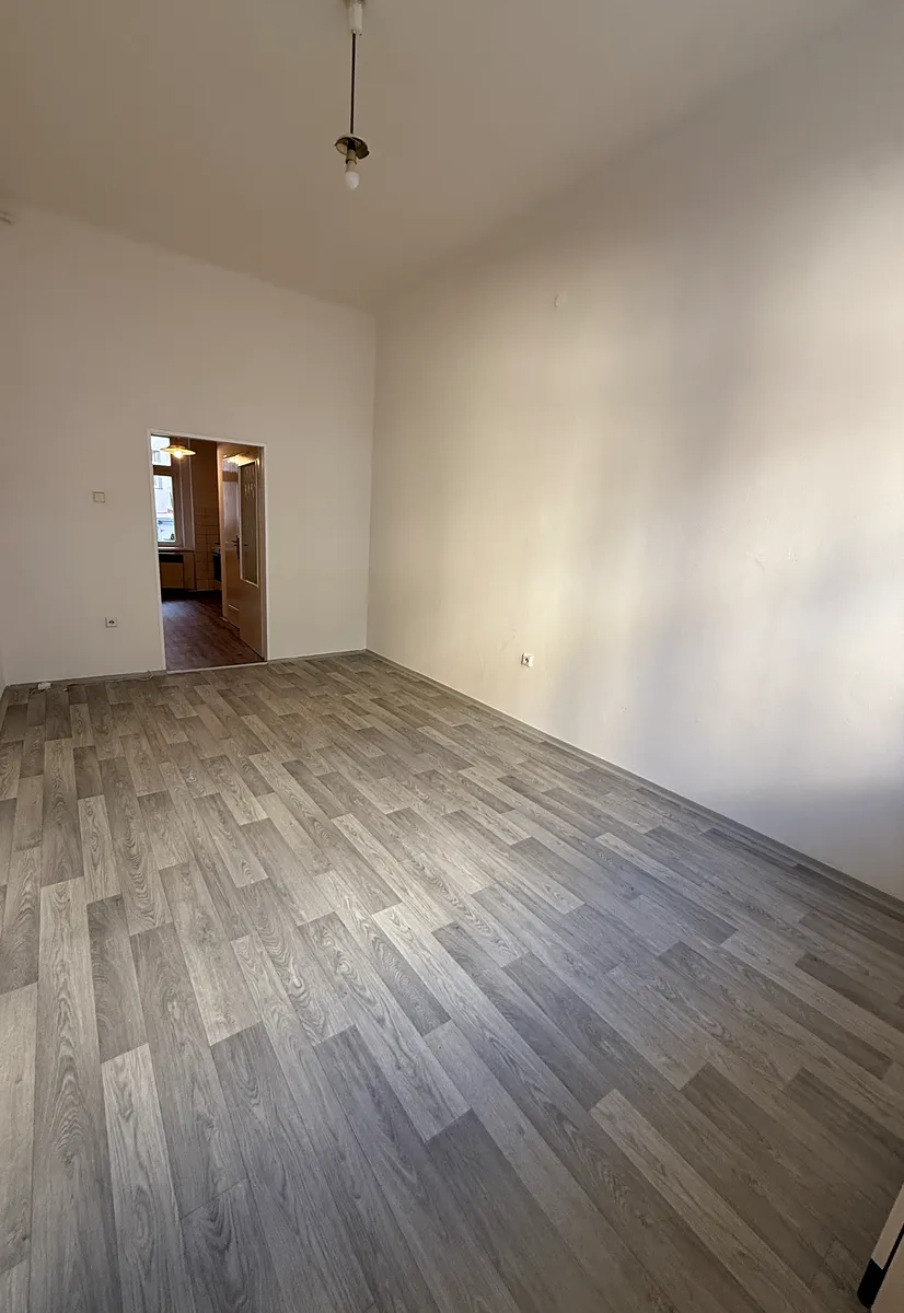 Dispozice bytu sestává ze samostatné kuchyně a jedním pokojem, koupelna se sprchovým koutem a toaletou zvlášť.