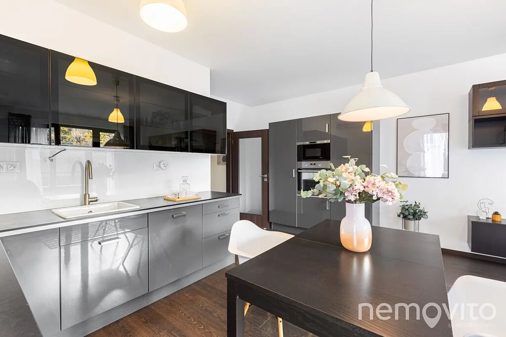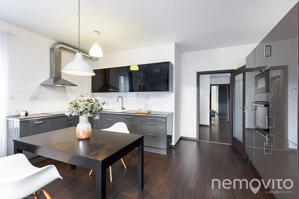 Prostorný byt 3+kk se dvěma balkony, sklepem a garážovým stáním. Plocha bytu je 81 m2 (bez sklepa a balkonů), umístěný je ve druhém podlaží na rohu budovy (směrem do jednosměrné ulice) a k dispozici je okamžitě. Díky solidní ploše netrpí nedostatkem místa, zejména pak hlavní ložnice nebo chodba nabízí opravdu nadstandardní plochu.
