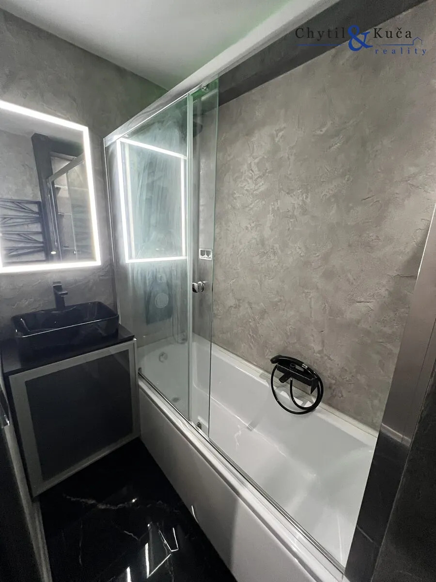 revitalizovaného domu s výtahem na ulici Fugnerova v Přerov. Byt prošel kompletní rekonstrukcí. Vstup do bytu ze společné chodby vede přes bezpečnostní dveře, kde se dále nachází prostorná vstupní chodba, která disponuje vestavnými skříněmi zhotovenými na míru s úložným prostorem. Z centrální chodby je dále vstup do obytného pokoje, dále pak do koupelny a rovněž na toaletu. Vstup z chodby je dále pak do obývacího pokoje, který je spojený s kuchyňským koutem. Ložnice se nachází za obývacím pokojem. Na podlaze v chodbě, toaletě a koupelně se nachází keramická dlažba. V obytných místnostech se nachází podlaha plovoucí a u kuchyňského koutu se nachází na podlaze linoleum. Studená a teplá voda je přivedena dálkově. Vytápění bytu je rovněž dálkové. Obývací pokoj s kuchyní lze chladit pomocí klimatizace. Pro více informací a pro případnou prohlídku daného bytu neváhejte kontaktovat makléře.