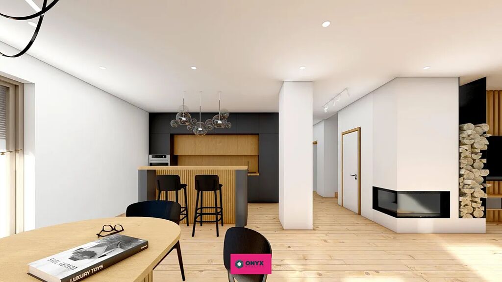 Nabízíme ke koupi velký moderní, nízkoenergetický - ve Třídě A - rodinný dům se dvěma plnohodnotnými podlažími, rovnou střechou a propracovaným dispozičním řešením. Dům disponuje šesti obytnými místnostmi, velkým obytným prostorem (obývací pokoj s kuchyní o velikosti 46 m² s prosklenou stěnou do "L" s přímým vstupem na terasu s HS portálem), třemi koupelnami, třemi toaletami a dvougaráží. Praktickým bonusem je samostatná prádelna s velkým francouzským oknem.