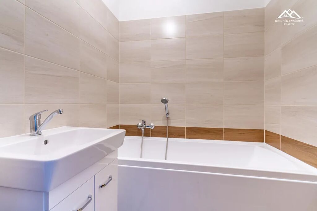 V bytě je vytápění řešeno infrapanely s termostatem - vytápění infrapanely maximalizuje účinnost přenosu tepla a výrazně snižuje tepelné ztráty a také jsou za ně velmi nízké náklady na elektřinu. Ohřev vody zajišťuje vlastní bojler.