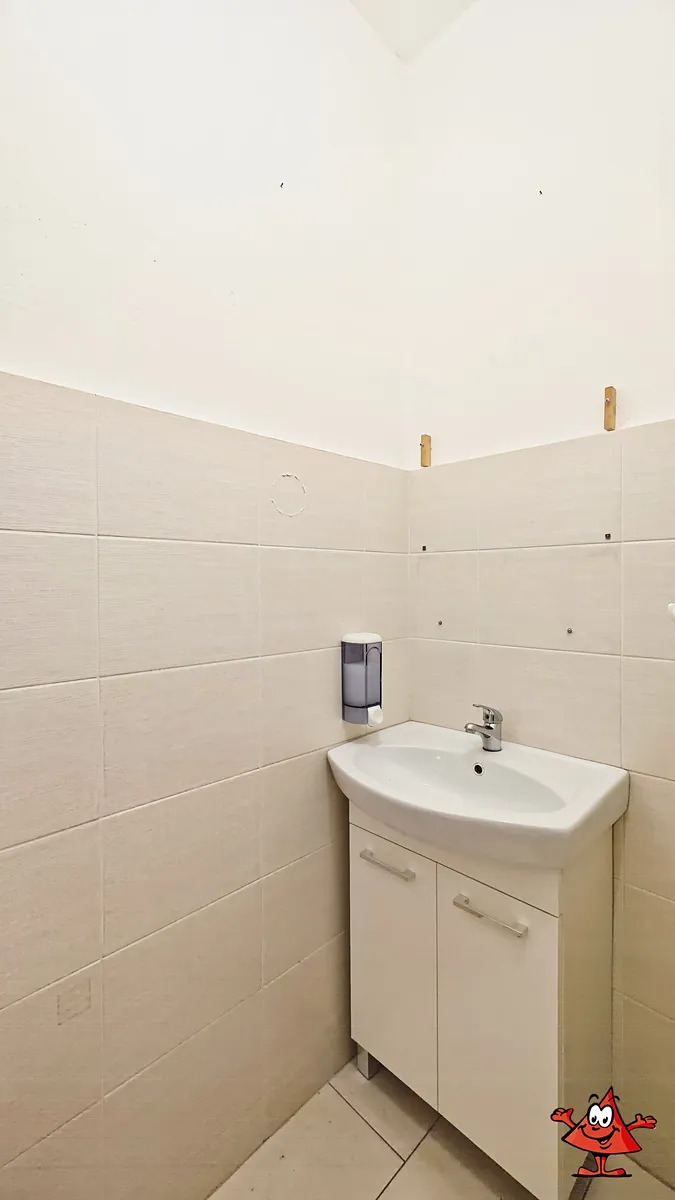 Dispozičně je kancelář řešena jako hlavní místnost s předsíní a sociálním zázemím. Prostor je vhodný pro práci 2-3 osob. Okna jsou orientována do klidného vnitrobloku a jsou téměř v úrovni prvního patra, vstup je z chodby, ze společných prostor. Díky velkému oknu je prostor světlý, díky vlastní kotelně v domě jsou náklady na vytápění a provoz nízké. V hlavním prostoru je vestavěná skříň, v předsíni další úložné prostory. Nábytek na snímcích není součástí nájmu, patří předchozím nájemcům. K dispozici optický internet a videotelefon.