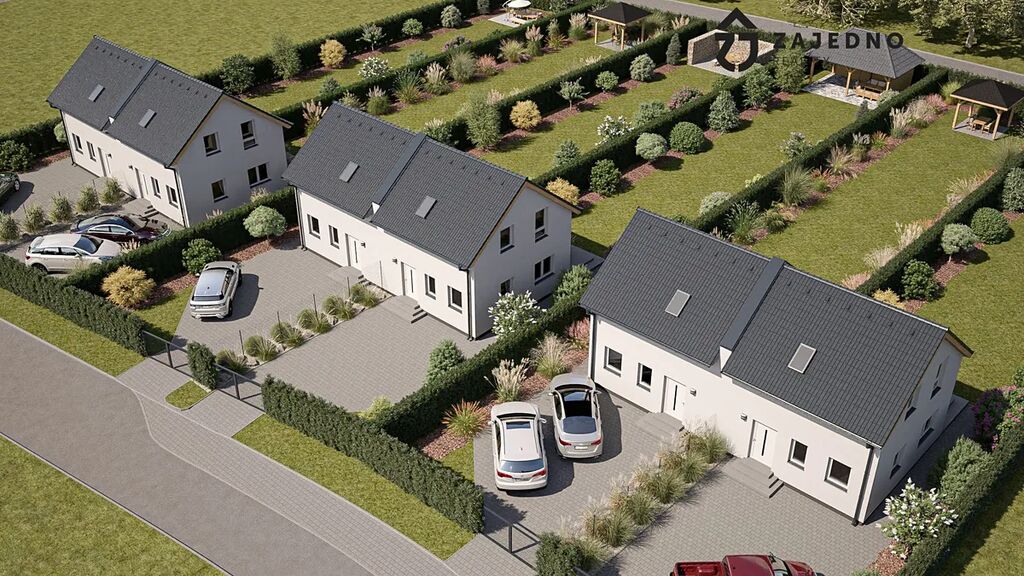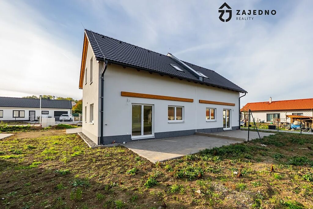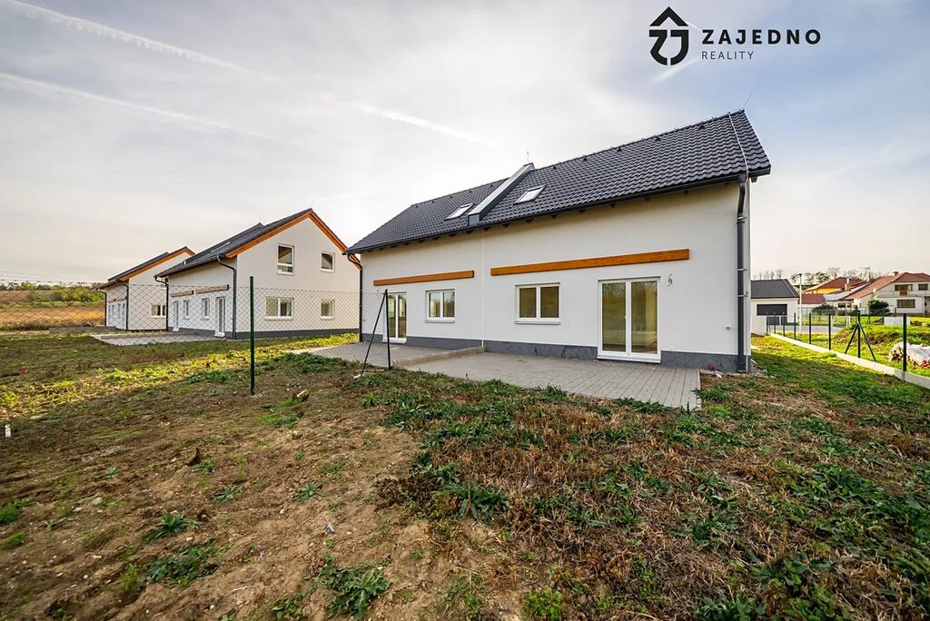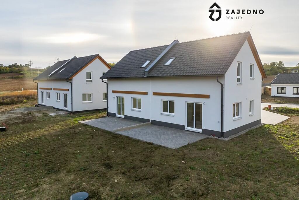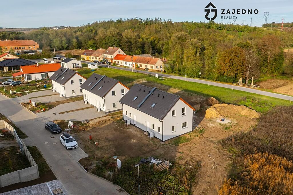 Dovolujeme si Vám představit projekt šesti rodinných domů o dispozici 4+kk v obci Hrubšice u Ivančic. Jedná se o tři dvojdomy, které jsou jednogenerační. Každý rodinný dům je nepodsklepený s obytným podkrovím zastřešený sedlovou střechou. Dům je napojený na veškeré inženýrské sítě. Obvodové konstrukce a vnitřní stěny jsou provedeny jako rámové dřevěné konstrukce v systému HAAS FERTIGBAU. Strop přízemí a podkroví jsou tvořeny dřevěnými stropními nosníky vyplněné tepelnou izolací. Podhled je tvořen sádrokartonem na laťování. Objekt zastřešuje sedlová střecha ze skládaných betonových tašek.