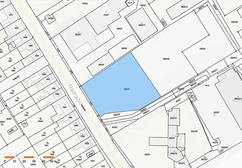 Dražba komerčního pozemku, Miroslav, Nádražní, 3076 m2