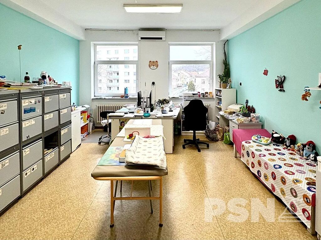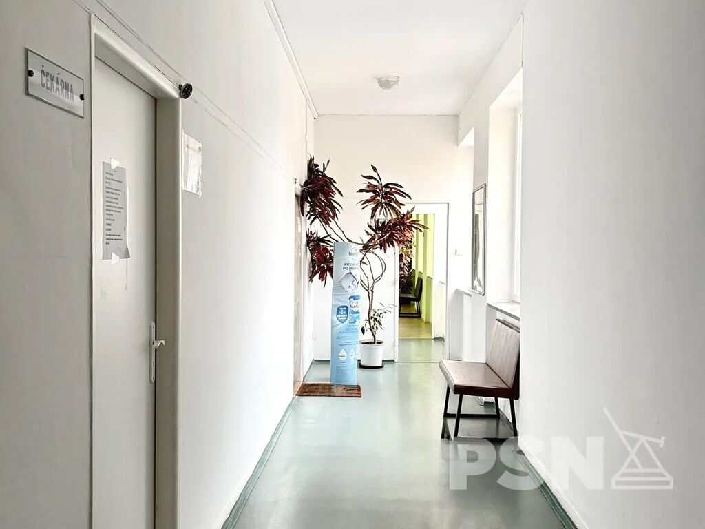 Dispozici tvoří prostorná čekárna pro pacienty (26,1 m2), hlavní ordinace (26,1 m2) a dvě kanceláře (11,3 m2 + 12,6 m2), přičemž uspořádání a způsob využití si můžete přizpůsobit Vašim potřebám. Na stejném patře se nachází další lékařské ordinace a ve společných prostorách jsou k dispozici toalety. V přízemí je k dispozici společná kočárkárna.