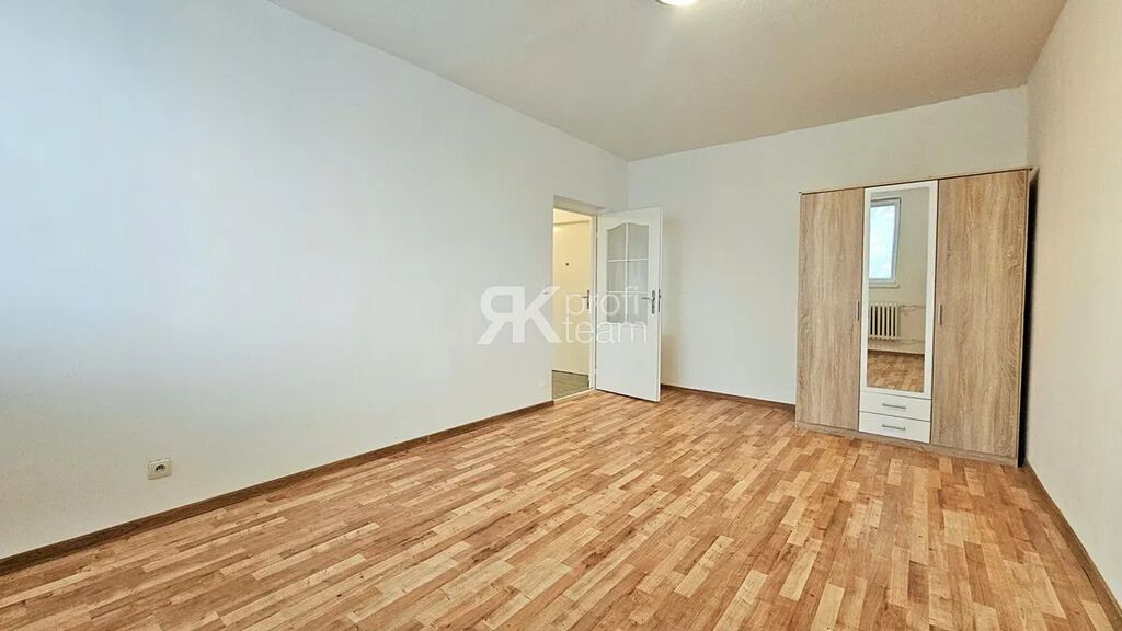 Pokoj o rozměrech 5,4 x 3,4m je vybaven šatní skříní. V předsíni je prostor pro další šatní skříň. Bytové jádro je zděné, koupelna se sprchovým koutem, samostatné WC.