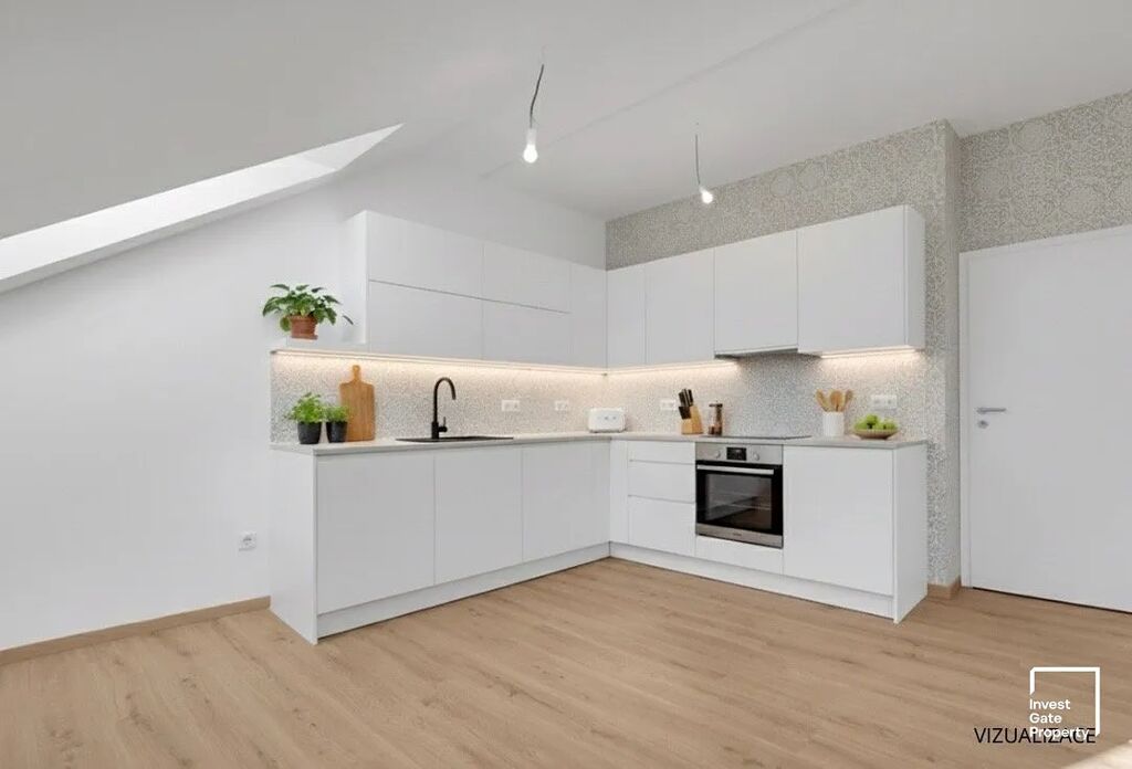 Byt se nachází v podkroví, a to v 4. patře bytového domu s výtahem. Jedná se o podkrovní byt, má tak jedinečnou romantickou atmosféru. Byt je o dispozici 2+kk, který nabízí velkorysých 47 m² podlahové plochy. Skládá se z obytného pokoje s plně vybavenou kuchyní, ložnice, technickou místností, koupelny s WC. Byt je postaven ve vysokém standardu bydlení – podlahové topení je rozvedeno v celém bytě, okna jsou vybavena elektronickými předokenními žaluziemi, které zajistí maximální komfort v každodenním životě. Do bytu je přiveden optický kabel pro internet.