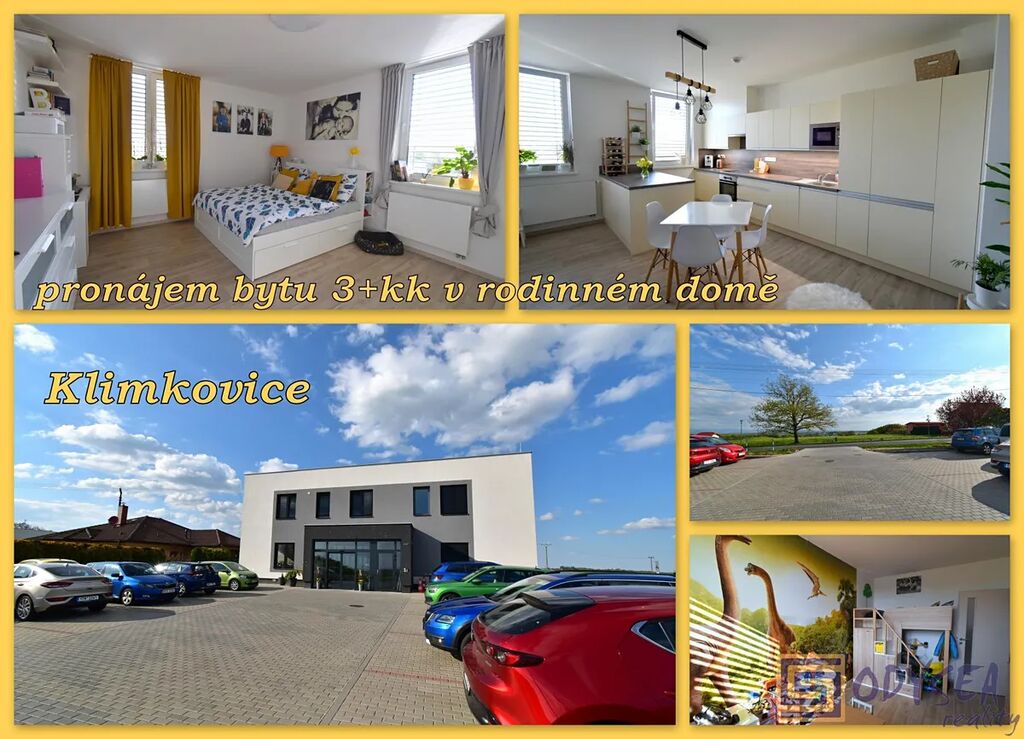 Exkluzivně nabízíme pronájem bytu 3+kk o velikosti 90 m2 v obci Klimkovice, část Hýlov. Byt se nachází v prvním patře, je vybaven novou kuchyňkou linkou včetně spotřebičů, většina ostatního nábytku na fotografiích není součástí pronajímaného bytu. Dispozice bytu zahrnuje samostatnou ložnici, dětský pokoj a prostorný obývací pokoj propojený s otevřenou jídelnou s kuchyňským koutem. Součástí bytové jednotky je velká koupelna a široká chodba s dostatkem úložných prostor.