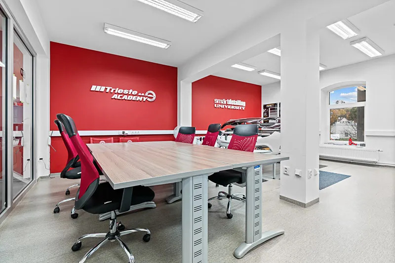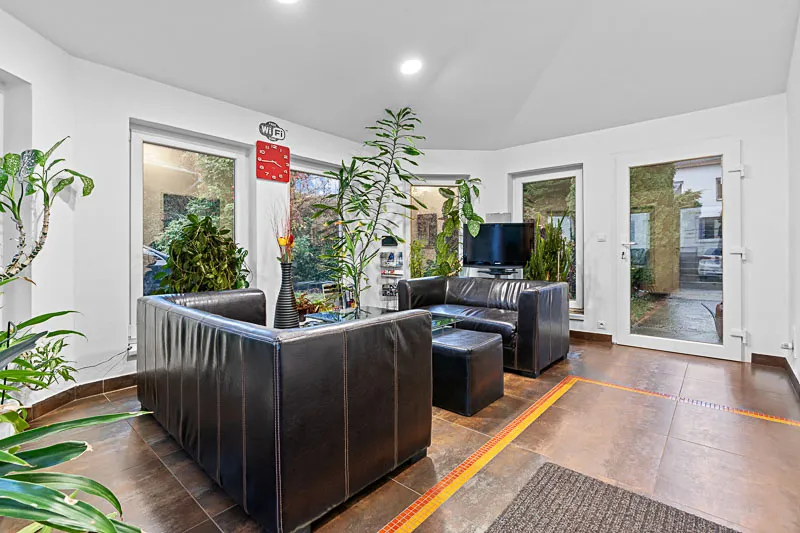 Dvoupatrový objekt s obytným podkrovím nabízí celkem 307 m² užitné plochy. Prostory lze využít jako kanceláře, technické místnosti či zázemí pro vedení společnosti. Budova má tři podlaží o ploše 128 m² na každém podlaží.