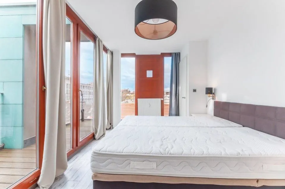 K bytu náleží dvě terasy, které obyvatelům nabízí úplné soukromí skryté před zraky sousedů. Na jedné z nich je i vestavěná infrasauna. Dispozici bytu tvoří prostorný obývací pokoj s plně vybavenou kuchyní a multifunkčním nábytkem, dvě ložnice, dvě koupelny, dvě šatny. Celý byt je stylově vybavený, kromě druhé ložnice, jejíž zařízení necháme na potřebách nových obyvatel. V obou ložnicích je klimatizace. Terasy jsou vybaveny nočním osvětlením, obsahují zásuvky. V kuchyni je parní trouba, myčka, lednička, drtič odpadu. Koupelna je vybavena pračkou a sušičkou. Celý byt je vzdušný a světlý díky velkému počtu oken a klimatizaci.