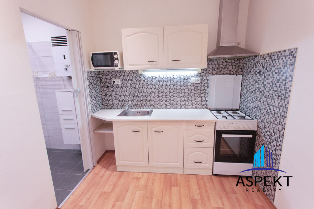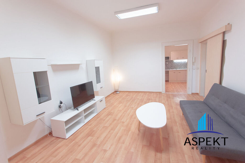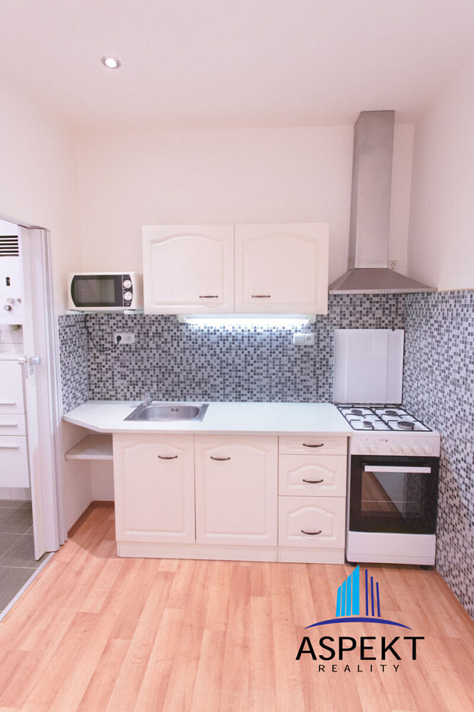 Byt je částečně vybavený viz aktuální fotografie. Dispozice zahrnuje vstupní chodbu, prostorný obývací pokoj a ložnici s výhledem do klidného zeleného vnitrobloku, který nabízí možnost posezení a relaxace. Samostatný kuchyňský kout (bez okna) je prakticky oddělený.