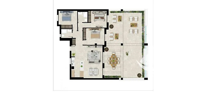 Na pobřeží Costa del Sol vzniká rezidenční projekt, který umí spojit výhledy na moře, moderní styl a pohodlí, díky kterému se člověk cítí jako doma od prvního dne. Tento exkluzivní penthouse v nejvyšším patře nabízí 111 m² vnitřního prostoru, tři ložnice, tři elegantní koupelny a světlý obývací pokoj propojený s moderní kuchyní. Dominantou bytu je soukromá terasa o 109 m² orientovaná na západ, odkud je vidět moře, hory i západy slunce, které by klidně mohly viset v galerii. Je to prostor, kde se dá celý rok relaxovat, grilovat nebo jen nechat čas plynout u sklenky vína.