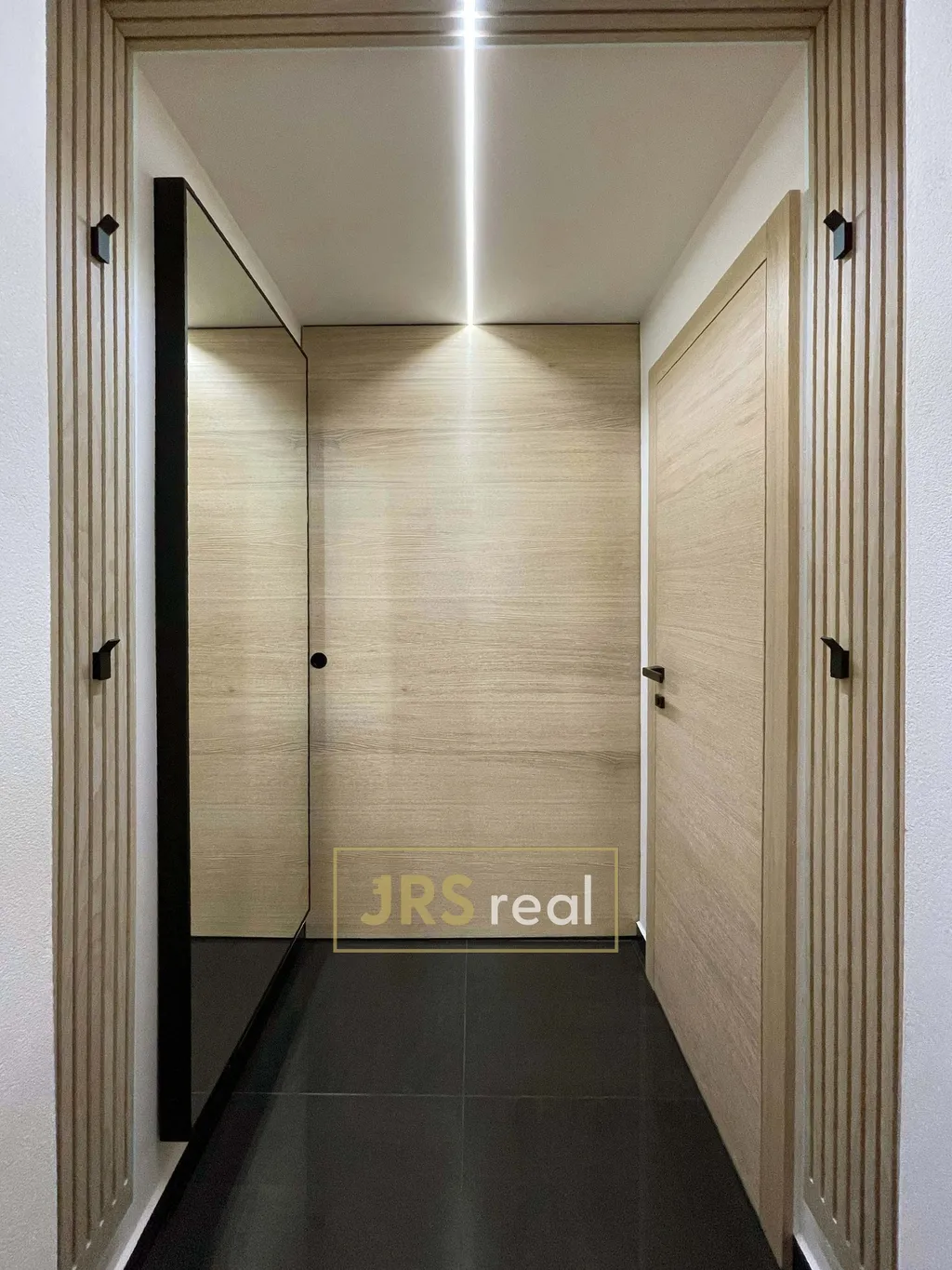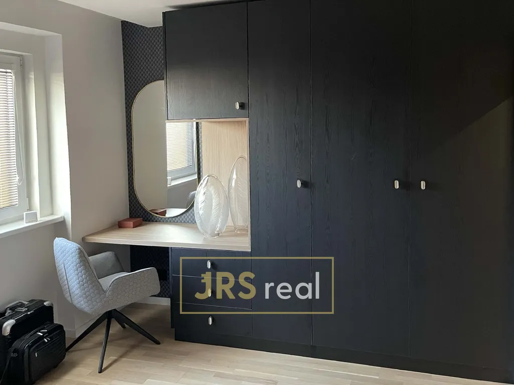 V celém bytě je vestavěný nábytek na míru, který byl promyšleně umístěn tak, aby co nejlépe využil každý volný kout v bytě. Skříně, police a úložné prostory jsou elegantně začleněny do interiéru a doplňují celkový moderní vzhled.