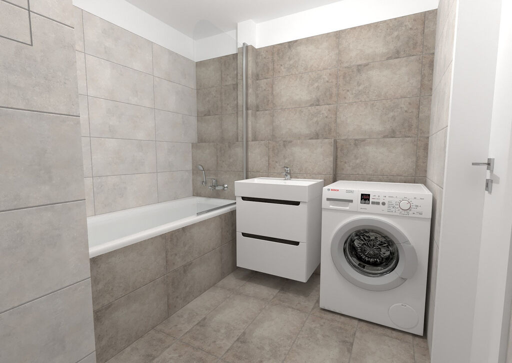Zcela nový byt s dispozicí 2+kk a podlahovou plochou 42,2 m² v etapě E projektu Ekocity Hostivař se nachází v 5. nadzemním patře s orientací na jih. K bytu náleží balkon o výměře 4,1 m². K bytu je možné pronajmout i garážové stání za zvýhodněnou cenu 1.500,- Kč/měsíc. Byt disponuje obývacím pokojem spojeným s kuchyňským koutem, koupelnou spojenou s WC a ložnicí. V chodbě je dlažba, v pokojích je plovoucí podlaha. Kuchyně je vybavena zcela novými spotřebiči (myčka na nádobí, trouba, mikrovlnná trouba, indukční deska, odsávání, vestavěná lednice, černý granitový dřez s černou baterií), viz vizualizace. Za kuchyňskou linkou bude omyvatelná barva nebo betonová stěrka. S nájemci lze dohodnout podle preferencí cca do poloviny ledna. Koupelna je vybavena vanou se skleněnou zástěnou, umyvadlem se skříňkou, kulatým podsvíceným zrcadlem, toaletou a bidetovou sprškou. Je zde prostor pro pračku a případně i sušičku, viz vizualizace. Vizualizace odpovídají přibližně, např. obklad a dlažba v koupelně a chodbě je v reálu estetičtější. V bytě je rekuperace, bezpečnostní vchodové dveře a příprava na venkovní žaluzie.