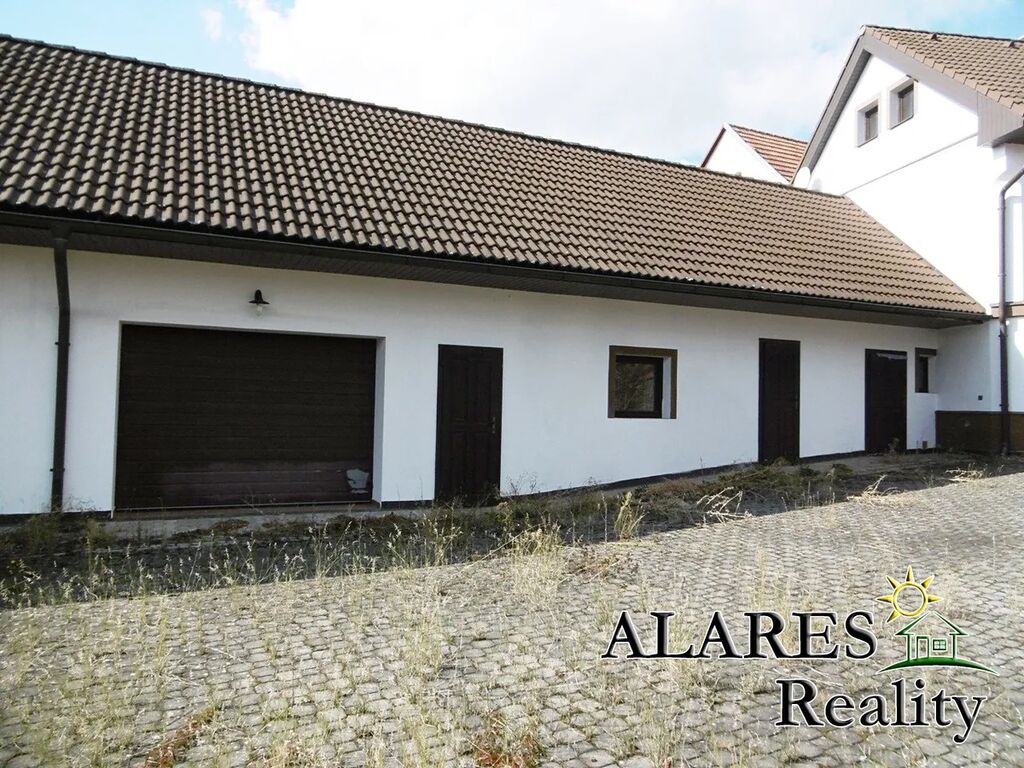 Bývalá hospodářská budova předělaná na technickou místnost, komoru, dílnu, dvojgaráž (el. vrata na dálkové ovládání), sklípek, a nad tím vším opět prostorná půda.
