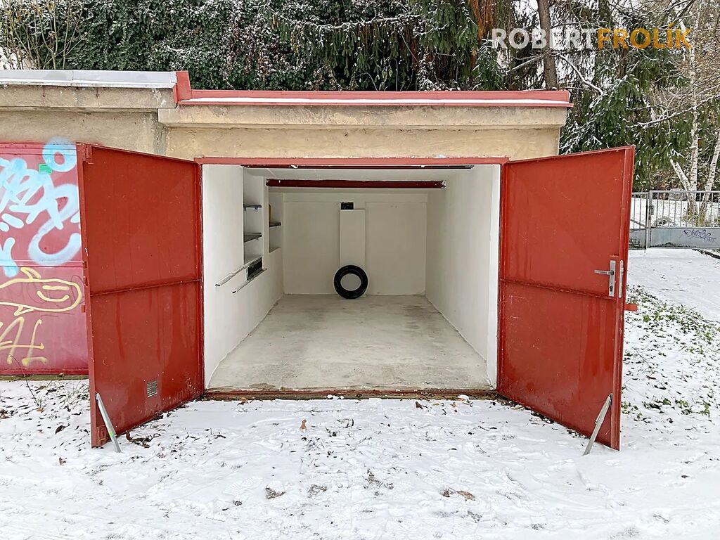 Garáž je velmi dobře udržovaná. Je bez elektřiny, má manuální plechová vrata, plechovou střechu. Strop je zřejmě z betonových bloků, položených na ocelových profilech. Před garáží je stružka na odvod vody. Cca před 5ti lety proběhla kompletní renovace vrat (nové plechy, nátěry), cca před 2 roky oprava interiéru garáže, v říjnu 2025 nátěr plechové střechy.
