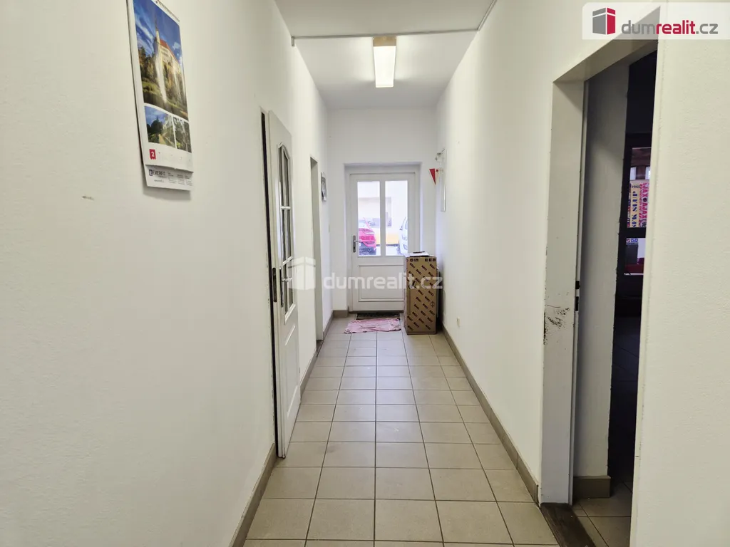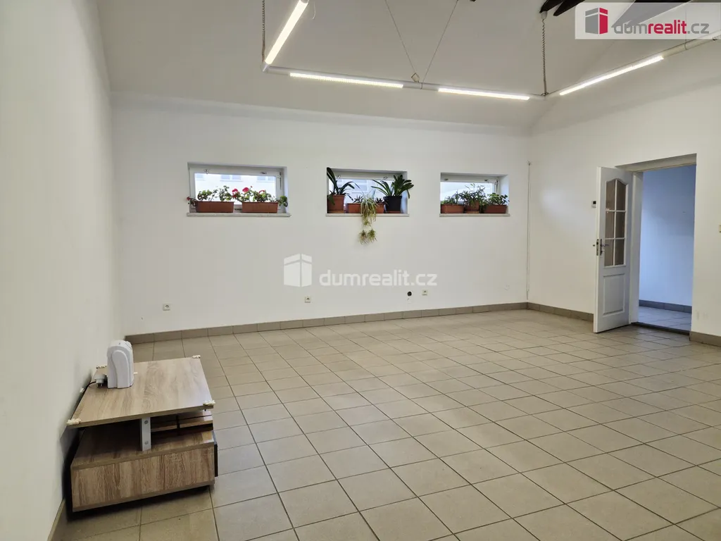 Jedná se o prostory v jednopodlažním domě se dvěma vchody, využitelné k mnoha druhům komerční činnosti: prodej, prezentace, sídlo firmy, skladování a další. Hlavní vzdušná místnost s přiznanou stavbou střešní konstrukce a s přístupem na prosklenou, zastřešenou verandu o 15,5 m², nabízí necelých 40 m² podlahové plochy. Naproti přes chodbu se pak nachází další místnost o 9,1 m² a zázemí s umyvadlem, sprchovým koutem, samostatným WC, viz půdorys ve fotogalerii.