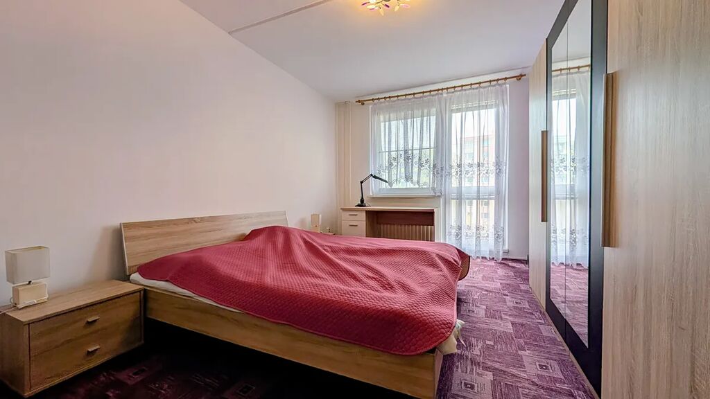 Byt má neprůchozí pokoje, plastová okna a zděné jádro. Samostatná kuchyně je vybavena kuchyňskou linkou a jídelním stolem. Z ložnice je vstup na balkon s výhledem do okolí.