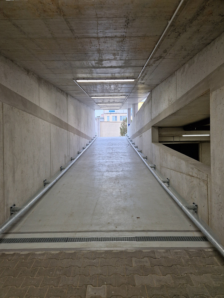 Nabízíme k pronájmu podzemní garážová parkovací stání pro dvě auta, v centru obce Zlín. ul. Sadová. Tato nová garáž se nachází v podzemním podlaží, které je přístupné i osobním výtahem, což zajišťuje bezbariérový přístup. Objekt byl dokončen v roce 2022.