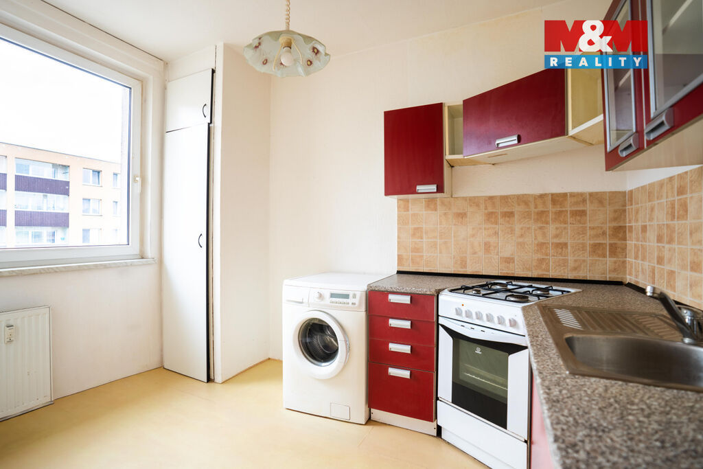 Dispozice bytu zahrnuje 3 místnosti (kuchyň, obývací pokoj a ložnice) + koupelnu propojenou s WC a je ve velmi dobrém stavu. Součástí prodeje je kuchyňská linka, sporák a pračka, v suterénu sklep.