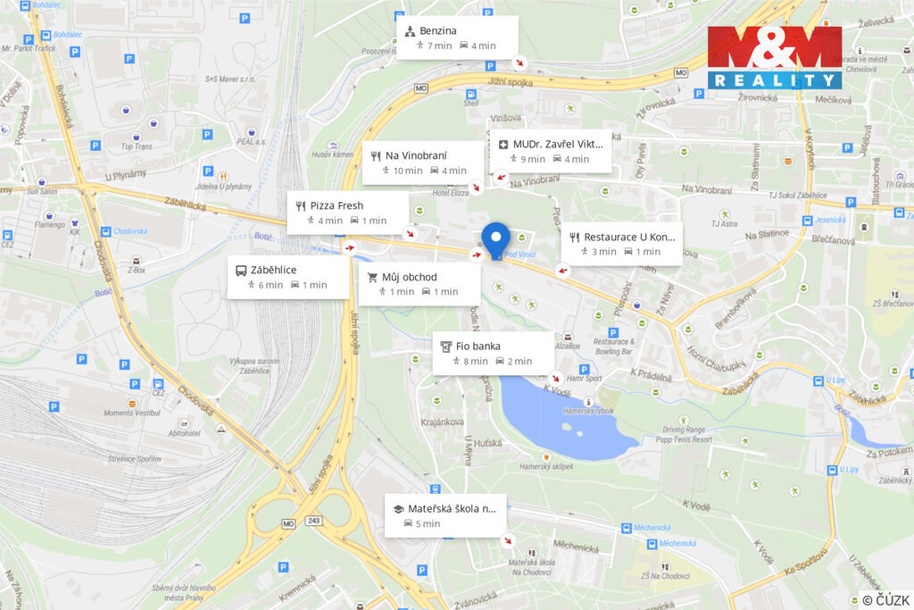 Okolí nabízí vše, co rodiny ocení – rybník Hamr, sportovní areál, cyklostezky, hřiště, školky, školy, kavárny i obchody – to vše v docházkové vzdálenosti.