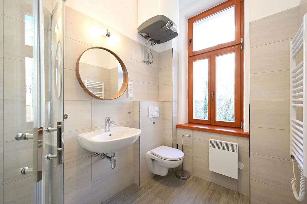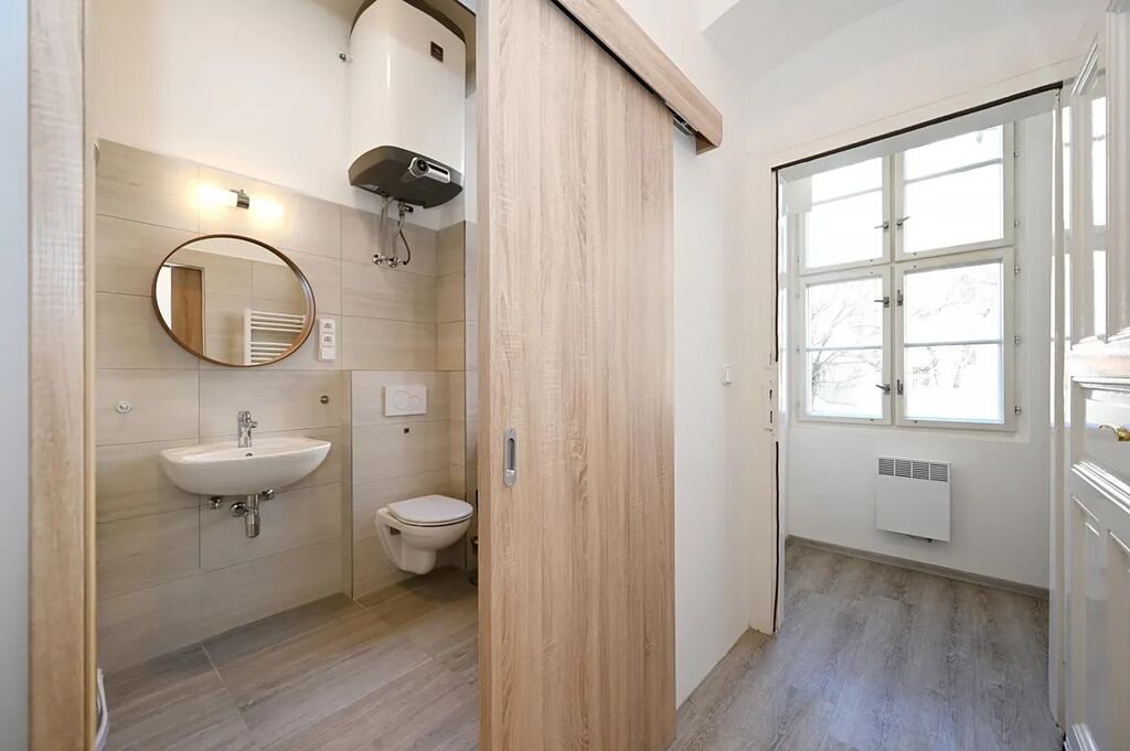 Pronájem zcela nové rekonstrukce nezařízeného bytu 1+1 o velikosti 37 m2 na druhém patře bez výtahu.