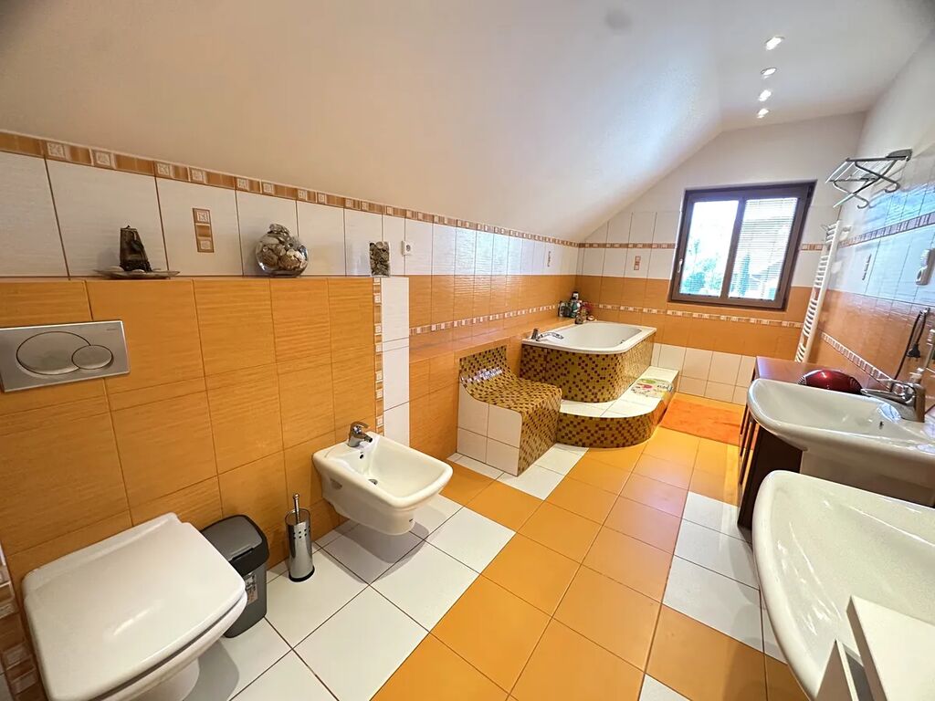 • Chodba s přístupem na pochozí půdu (zateplená, obložená OSB deskami, umístěné zařízení pro internet 350 Mb/s a kamerový systém, malé střešní okno s přístupem na střechu - střecha Bramac)