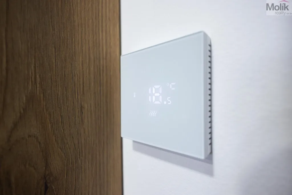 Teplo domova je řešeno podlahovým topením, jak přízemí tak i v patře. Každá místnost má vlastní ovládaní teploty, tepelné čerpadlo.