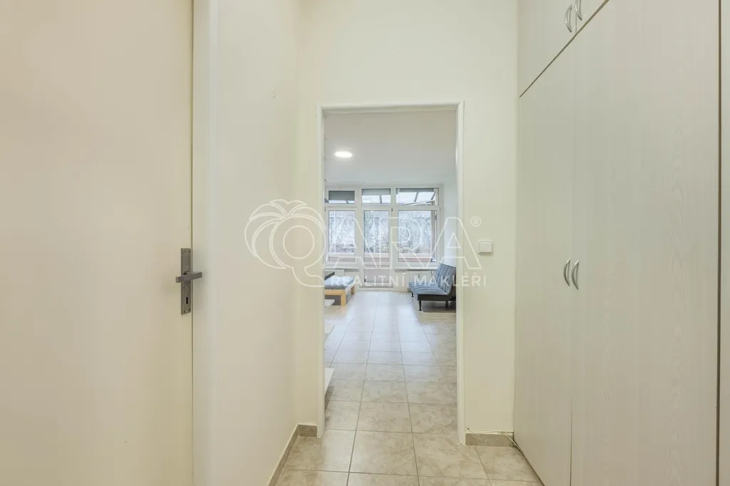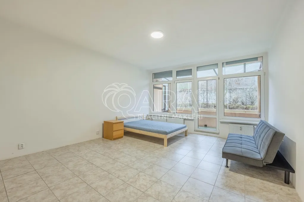 V zastoupení majitele Vám nabízíme velice dobře dispozičně řešený byt o dispozici 1+kk, nacházející se v přízemí velmi udržovaného domu ve Zbraslavi. Plocha bytu činí 32 m2 a skládá se z chodby (ve které jsou umístěné vestavěné šatní skříně), ze které se dostanete do krásného obývacího pokoje s velkým zastřešeným balkonem (orientován do klidné zahrady). V obývacím pokoji je kuchyň vč. ledničky. Koupelna je přístupná z chodby a nabízí vanu a toaletu. Součástí bytu je nová postel a nový rozkládací gauč - možné odstěhovat. K bytu náleží i samostatná koje např. pro umístění kola apod.
