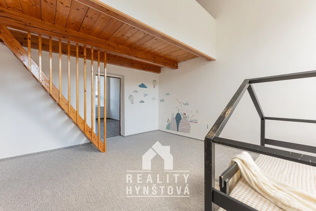 V obývacím pokoji najdete i menší mezipatro – ideální místo na relax po práci, pro čtení nebo tvoření.