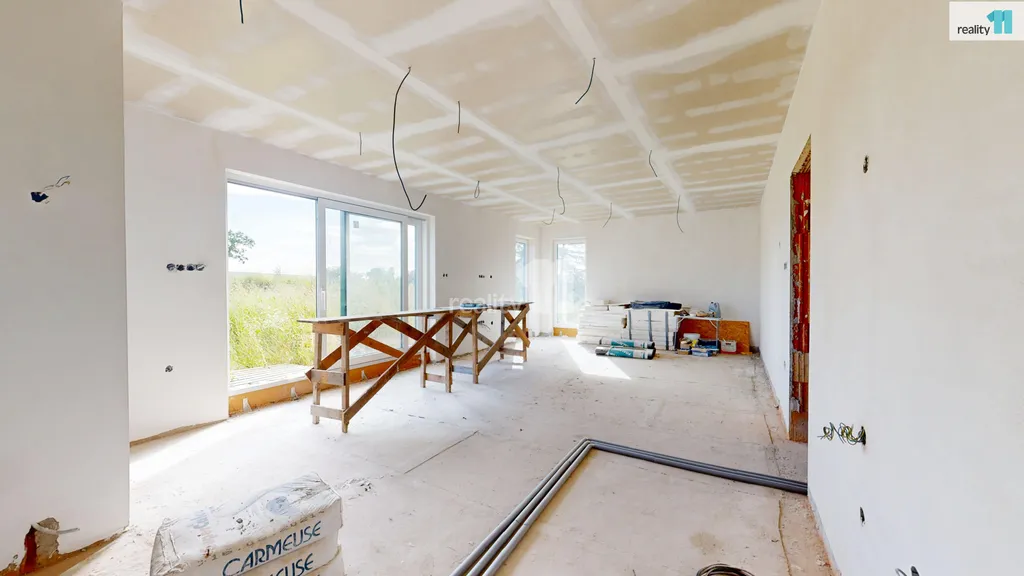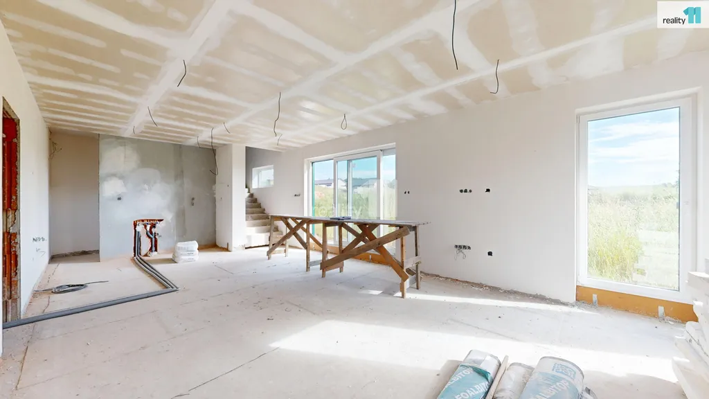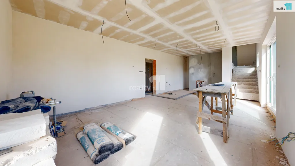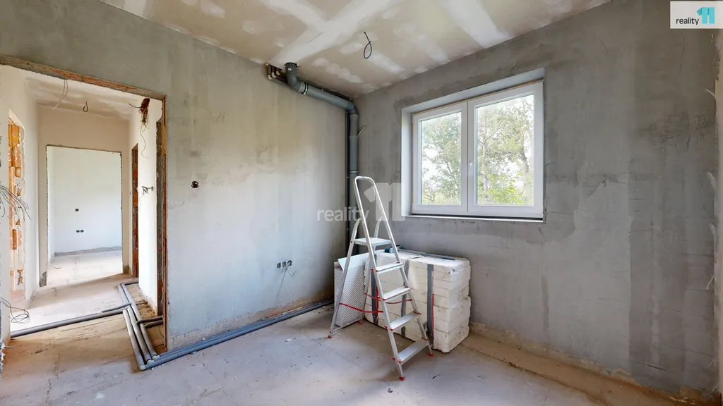 Reality 11 Humpolec Vám exkluzivně zprostředkují koupi rozestavěného rodinného domu v obci Kojetín, která leží pouhých 7 minut jízdy od Města Havlíčkův Brod, Kraj Vysočina. Nemovitost je situována na krásném okrajovém pozemku o celkové výměře 1.514 m², z toho zastavěná plocha stavbou činí 165 m². Dům je připraven k dokončení dle Vašich vlastních představ a nabízí velký potenciál jak pro trvalé bydlení, tak jako bydlení a kombinace s podnikáním. Dispozice domu je velkorysá: 6+kuchyňský kout o celkové podlahové ploše cca 182 m² (součet obytných ploch ze dvou podlaží), ideální pro větší rodinu nebo dvougenerační bydlení. Rozvržení místností a výměry 1.NP (120,8 m² + 6,6 m² schodiště): Zádveří (6,20 m²), Technologie (6,00 m²), Garáž (25,00 m²), Chodba/schodiště (6,60 m²), Obývací pokoj + jídelna + kuchyňský kout (42,70 m²), Spíž (1,60 m²), Chodba (4,40 m²), Pokoj I. (10,80 m²), Pokoj II. (10,80 m²), Koupelna (4,70 m²), samostatné WC (2,10 m²), 2.NP (61,70 m²): Chodba (8,90 m²), Koupelna (7,20 m²), samostatné WC (1,90 m²), Ložnice (12,40 m²), Šatna (5,50 m²), Pokoj III. (13,80 m²), Pokoj IV. (12,00 m²). Zahájení stavby v roce 2021 a poslední stavební úpravy provedeny v roce 2025, dokončeny jsou rozvody vody, elektřiny, odpadů, slaboproudu a síťových prvků, plánované bylo podlahové vytápění. Z inženýrských sítí je do domu zaveden obecní vodovod, odpad je řešen kanalizací s přečerpávací jímky do veřejné kanalizace, plyn je na hranici pozemku. Máme pro Vás k dispozici 3Dvirtuální prohlídku nemovitosti od společnosti 3Dvirtualcz, dále také kompletní projektovou dokumentaci a půdorysy celého objektu. Obec Kojetín se nachází 6 km jihovýchodně od města Havlíčkův Brod, v klidné krajině Českomoravské vrchoviny. Díky výborné dostupnosti autem i autobusem je ideálním místem pro klidné rodinné bydlení s dosahem kompletní občanské vybavenosti v Havlíčkově Brodě (školy, školky, nemocnice, obchody, sportoviště). V případě zájmu o více informací kontaktujte kdykoliv makléře společnosti. Ev. číslo: 27545.