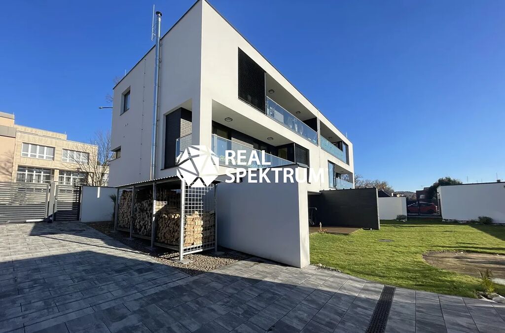 K nadstandartní výbavě bytu náleží i el. protipožární a bezpečnostní zabezpečení s vnějším kamerovým systém, volitelné připojení internetu a příprava pro dobíjení elektromobilů.