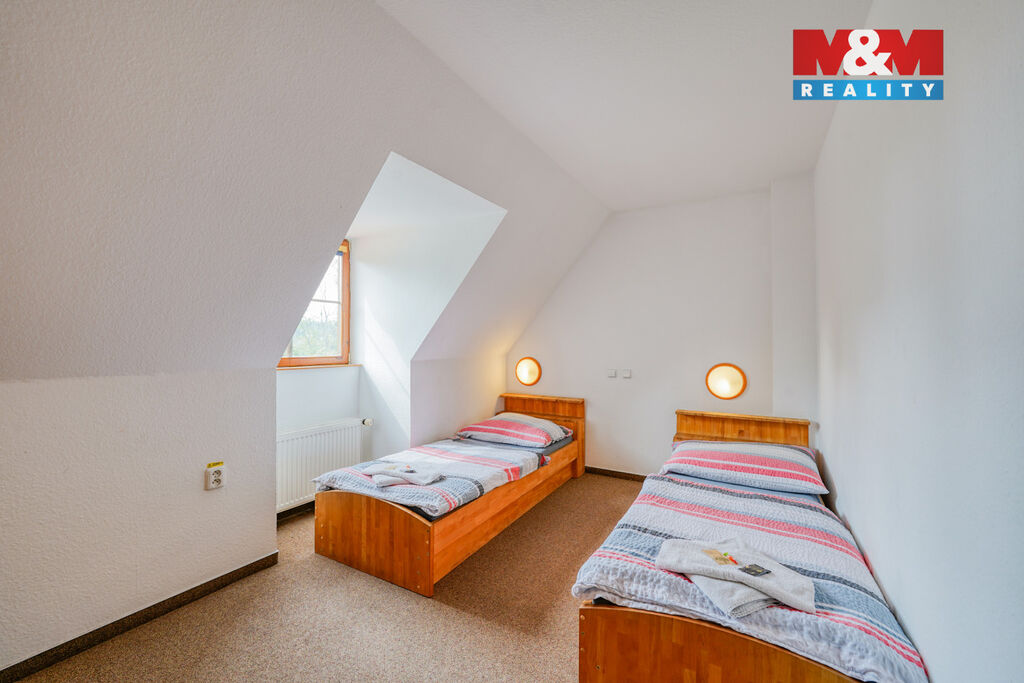 Nabízíme k prodeji unikátní chalupu v malebné části Nový Dvůr u Žihle, nedaleko historického městečka Rabštejna nad Střelou. Tato prostorná nemovitost v této chvíli slouží jako penzion, ale je zde možnost přestavět na chalupu či rodinný dům. Celková užitná plocha činí 689 m², což zajišťuje dostatek prostoru pro velkou rodinu nebo podnikání. Vytápění je řešeno LTO, voda z vlastního vrtu, kopané studny a odpad sveden do septiku. Chalupa se nachází na pozemku o rozloze 17 957 m² a nabízí klidné útočiště obklopené přírodou. Dále na pozemku najdeme zříceninu zámku Nový Dvůr – romantického historického prvku, rodinný dům určený k rekonstrukci, kemp pro karavany s el. přípojkami a venkovní bar. Pozemek dále poskytuje široké možnosti využití, včetně zahradničení, relaxace či chovu zvířat. Nemovitost se nachází v atraktivní lokalitě obklopené lesy, cyklistickými a turistickými stezkami. Pro více informací neváhejte kontaktovat makléře. S financováním Vám rádi pomohou naši finanční specialisté.