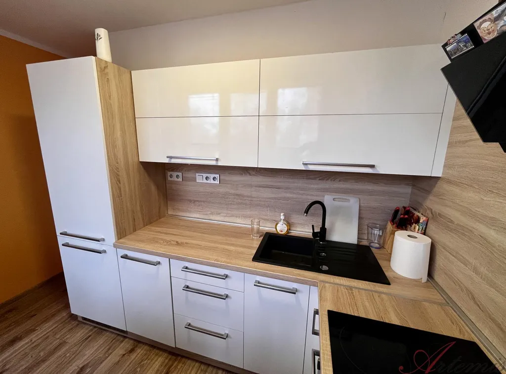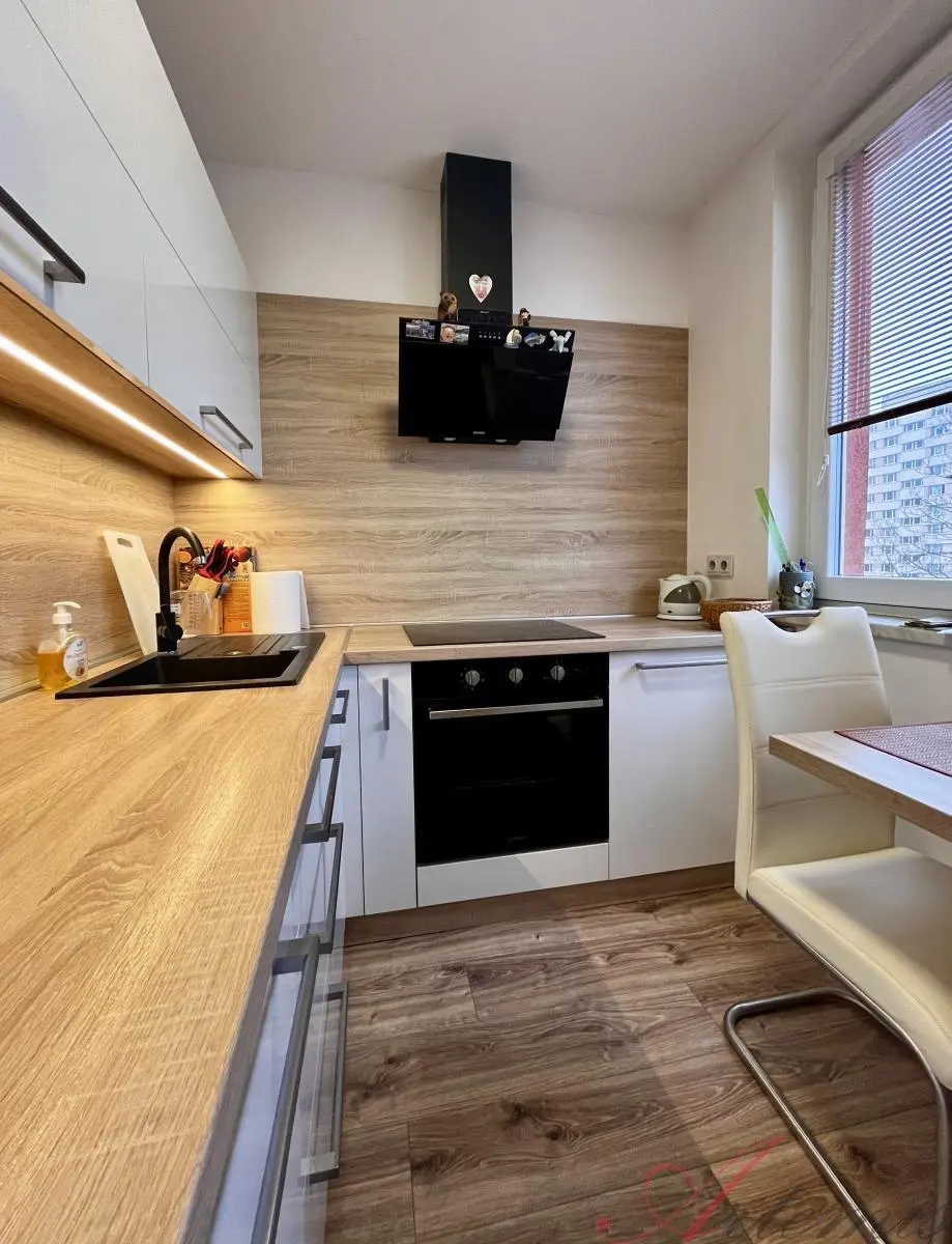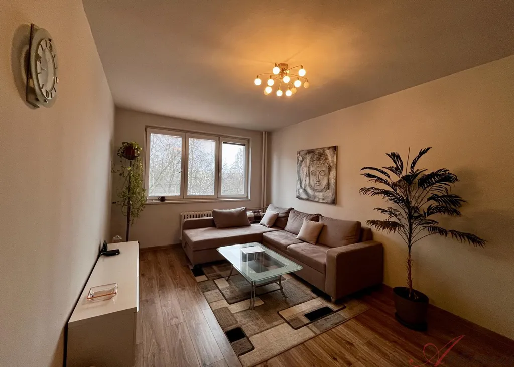 Zrekonstruovaný slunný byt je situován na východní stranu a nachází se v druhém patře revitalizovaného panelového domu. Kuchyně disponuje rohovou kuchyňskou linkou s indukční varnou deskou, digestoří, elektrickou troubou s funkcí rozmrazování, lednicí s mrazákem. Pokoje jsou neprůchozí a vybavení, které je zjevné z fotek je možné odkoupit, popřípadě bude byt vyklizený. Koupelna dominuje sprchový kout, umyvadlo se skříňkou, zrcadlo a dále je zde i pračka. Podlahové krytiny tvoří plovoucí podlahy, v sociálním zařízení je dlažba. K bytu náleží lodžie a sklepní kóje.