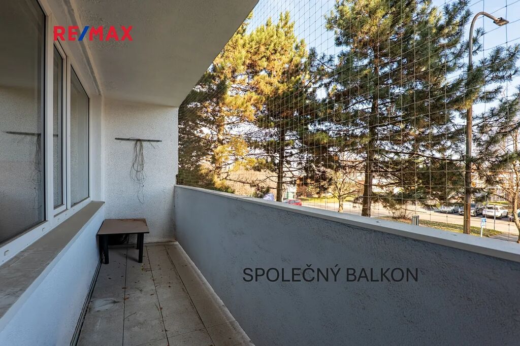 V mezipatře je k dispozici i prostorný společný balkon pro rezidenty – praktické místo pro krátkou chvilku na čerstvém vzduchu.