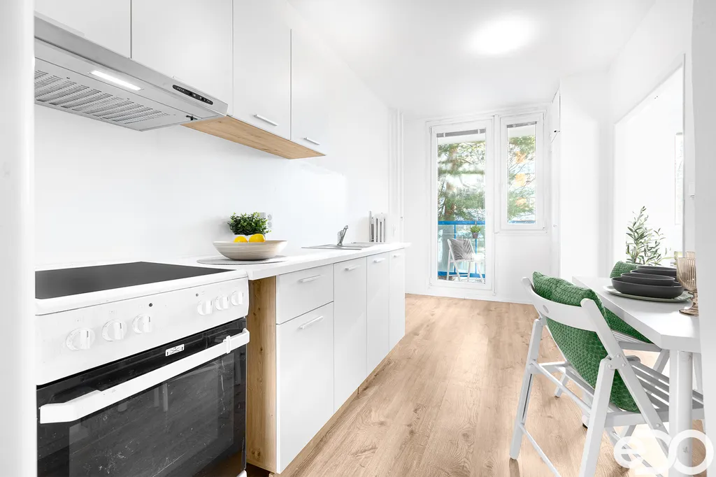 Byt má užitnou plochu 37,63 m², dále lodžii 3 m² a sklep 1,5 m². Součástí nedávné rekonstrukce byla koupelna se záchodem, kuchyňská linka se sporákem a digestoří, rozvody elektřiny a plovoucí podlaha. Některé části bytu budou ale potřeba ještě zrenovovat.