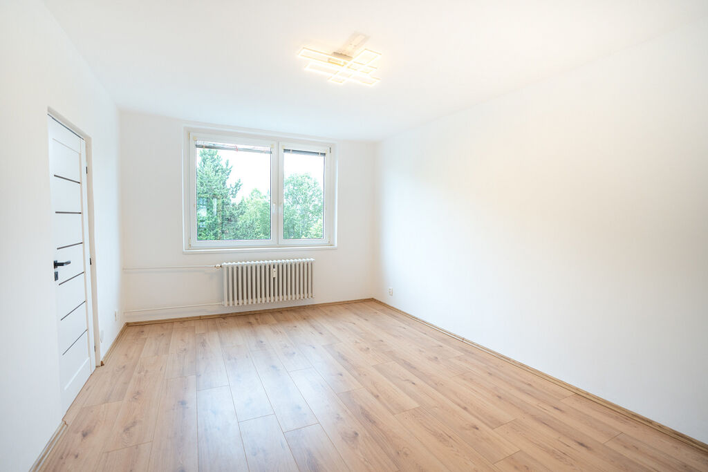 Byt prošel rozsáhlou rekonstrukcí, byly realizovány nové podlahy, omítky, interiérové dveře i vybavení. V části bytu byly rovněž obnoveny elektrické rozvody a rozvody vody. Kuchyňská linka v kombinaci černé barvy a dřevodekoru působí moderně a elegantně. Je vybavena granitovým dřezem s černou baterií a vestavěnými spotřebiči, myčkou Bosch, mikrovlnnou troubou Bosch, troubou Beko, plynovou varnou deskou Mora a lednicí s mrazákem značky Beko. Vše doplňuje praktické LED podsvícení.